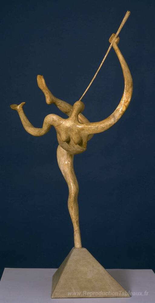 Nous vous proposons une reproduction artisanale sur toile du célèbre tableau 'Araldo di New Day' de Leon Underwood, provenant du Musée de la Reproduction.