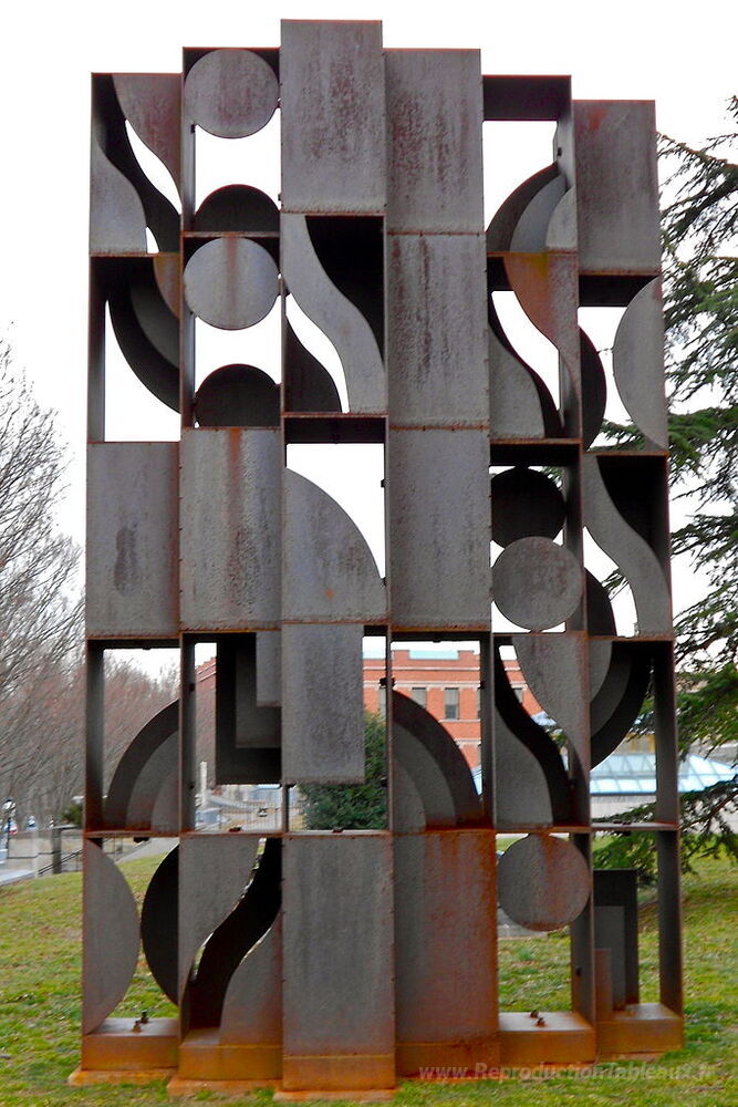 Nous vous proposons une reproduction artisanale sur toile du célèbre tableau 'Atmosphère et environnement x' de Louise Nevelson, provenant du Musée de la Reproduction.