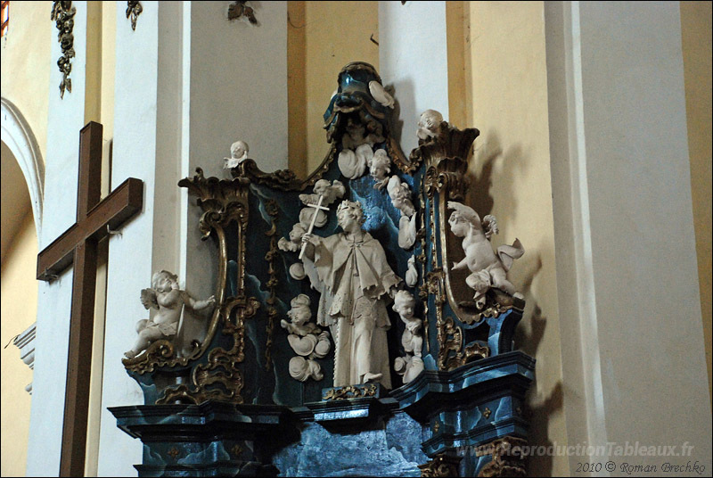 Nous vous proposons une reproduction artisanale sur toile du célèbre tableau 'Autel de Saint-Nicolas avec une sculpture de Jan Nepomuk' de Johann Georg Pinzel, provenant du Musée de la Reproduction.