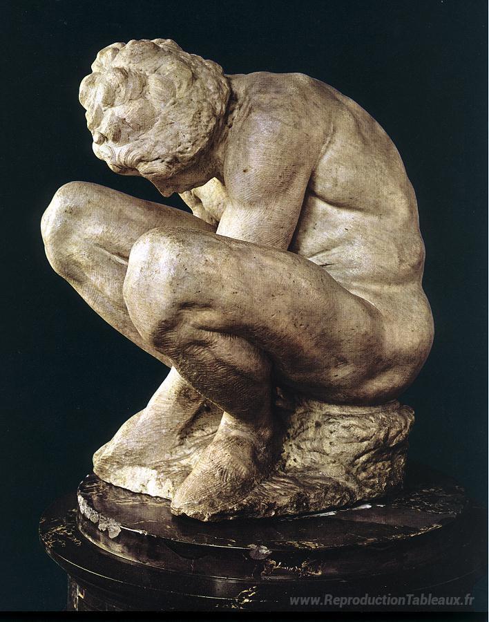 Nous vous proposons une reproduction artisanale sur toile du célèbre tableau 'Boy en accroupage' de Michelangelo, provenant du Musée de la Reproduction.