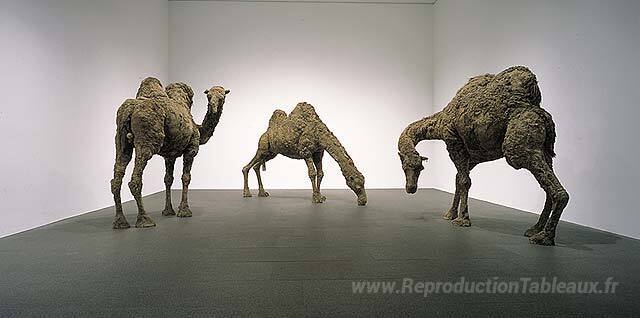 Nous vous proposons une reproduction artisanale sur toile du célèbre tableau 'Chameaux' de Nancy Graves, provenant du Musée de la Reproduction.