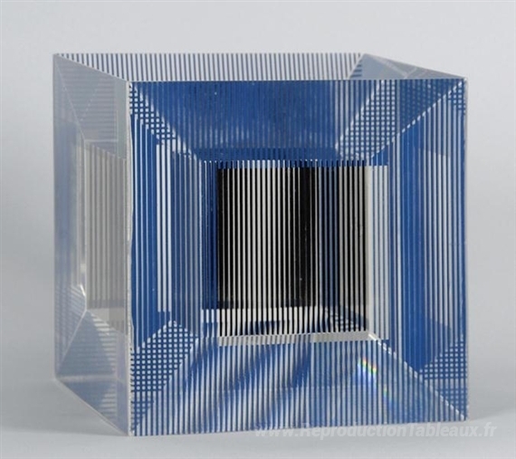 Nous vous proposons une reproduction artisanale sur toile du célèbre tableau 'Cube avec un espace ambigu' de Jesus Rafael Soto, provenant du Musée de la Reproduction.