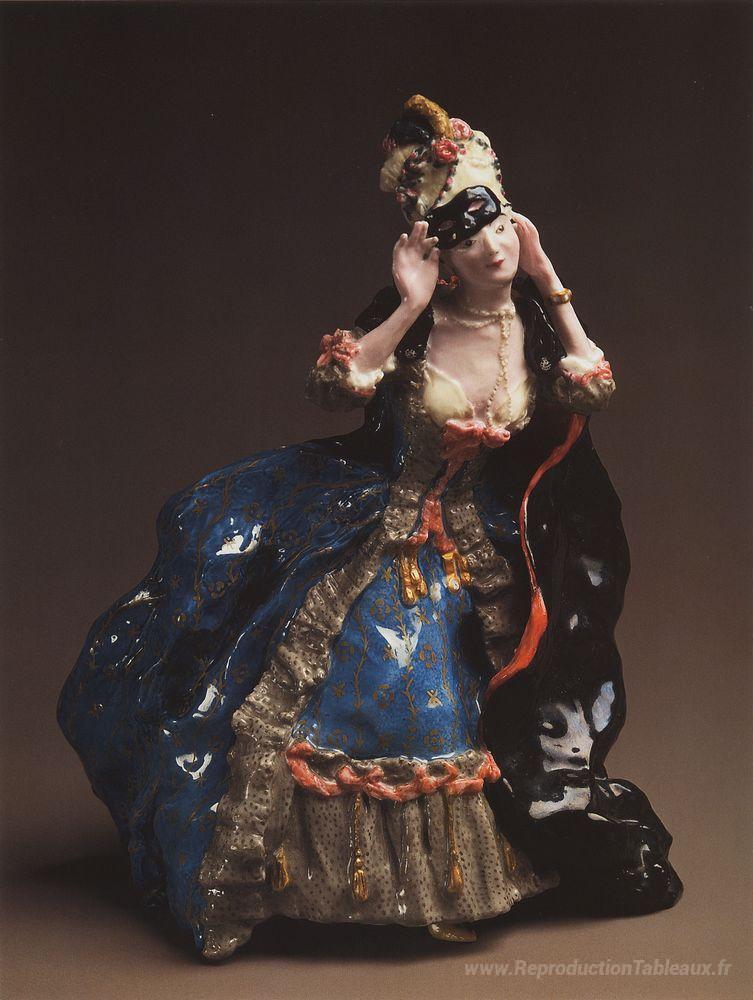 Nous vous proposons une reproduction artisanale sur toile du célèbre tableau 'Dame qui décolle un masque' de Konstantin Somov, provenant du Musée de la Reproduction.