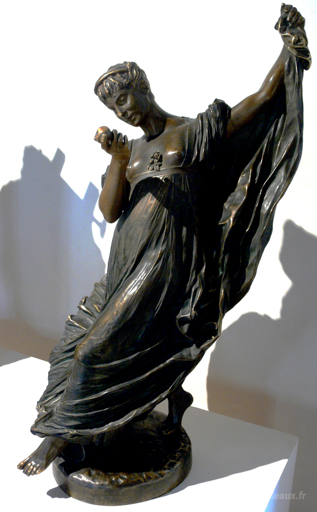 Nous vous proposons une reproduction artisanale sur toile du célèbre tableau 'Danseuse avec une pomme' de Jean-Leon Gerome, provenant du Musée de la Reproduction.