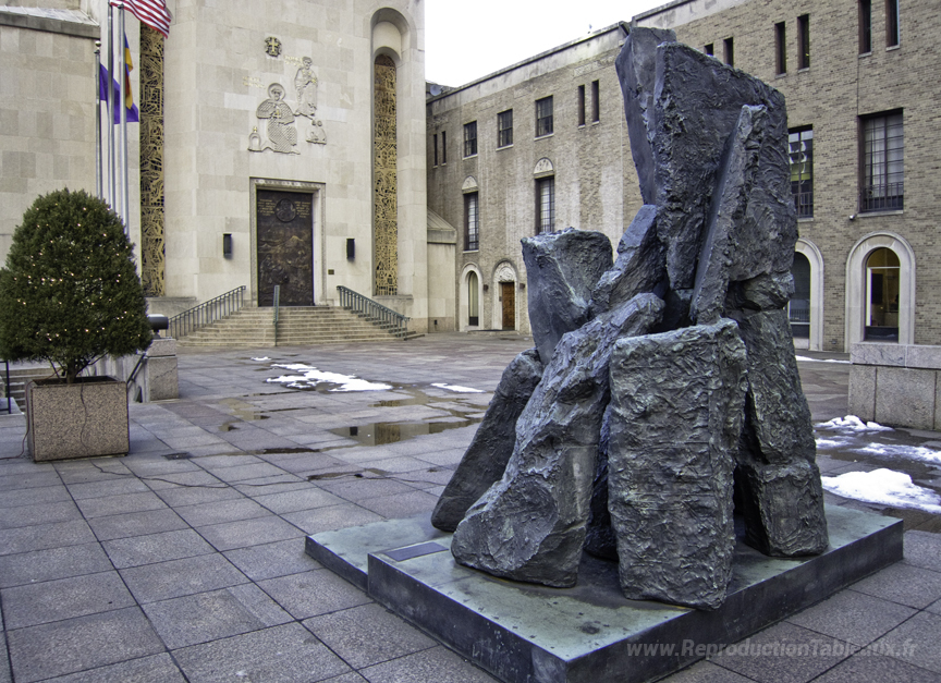 Nous vous proposons une reproduction artisanale sur toile du célèbre tableau 'Descente de la croix' de Reuben Nakian, provenant du Musée de la Reproduction.