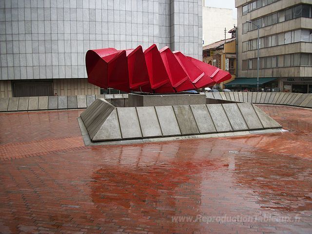 Nous vous proposons une reproduction artisanale sur toile du célèbre tableau 'Dinamismo' de Edgar Negret, provenant du Musée de la Reproduction.