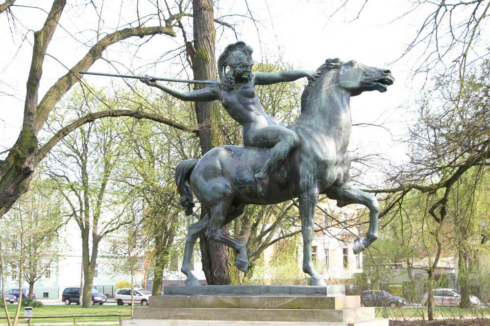 Nous vous proposons une reproduction artisanale sur toile du célèbre tableau 'Eberswalde amazone' de Franz Stuck, provenant du Musée de la Reproduction.