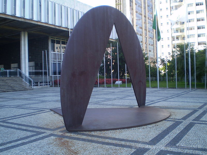 Nous vous proposons une reproduction artisanale sur toile du célèbre tableau 'Escultura no Sala das Bandeiras da Assembleia Legislativa de Min' de Amilcar de Castro, provenant du Musée de la Reproduction.