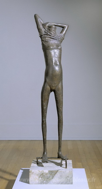 Nous vous proposons une reproduction artisanale sur toile du célèbre tableau 'Fille' de Reg Butler, provenant du Musée de la Reproduction.
