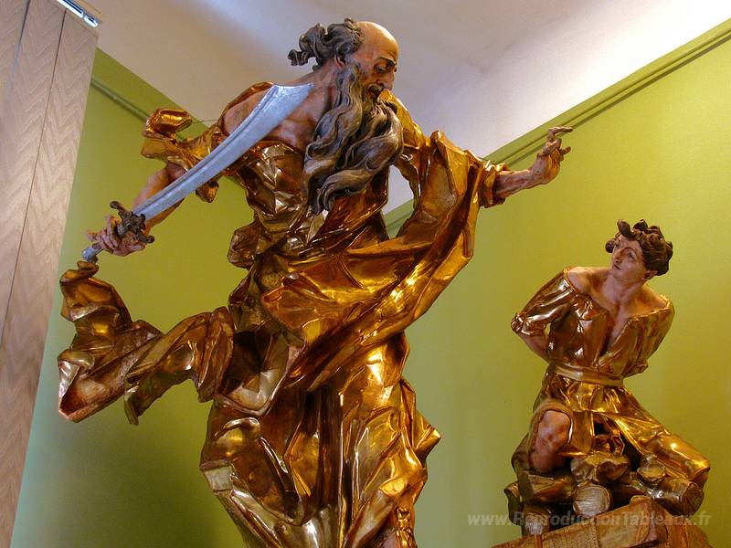 Nous vous proposons une reproduction artisanale sur toile du célèbre tableau 'Le sacrifice d'Abraham' de Johann Georg Pinzel, provenant du Musée de la Reproduction.