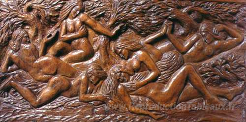 Nous vous proposons une reproduction artisanale sur toile du célèbre tableau 'Les femmes damnées' de Georges Lacombe , provenant du Musée de la Reproduction.