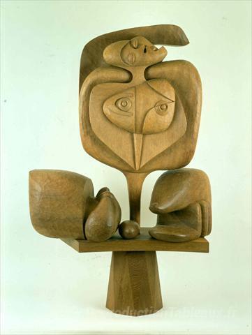 Nous vous proposons une reproduction artisanale sur toile du célèbre tableau 'Les principaux' de Le Corbusier, provenant du Musée de la Reproduction.