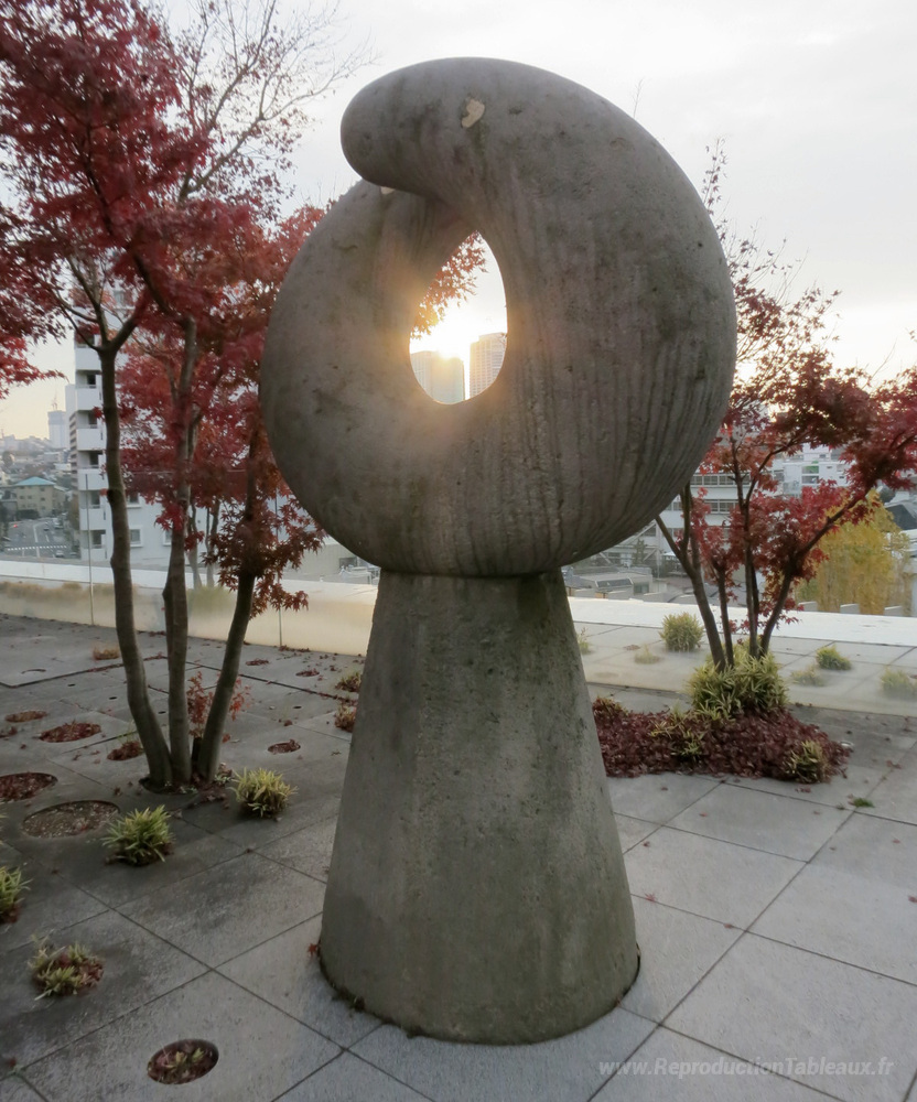 Nous vous proposons une reproduction artisanale sur toile du célèbre tableau 'Mu' de Isamu Noguchi, provenant du Musée de la Reproduction.