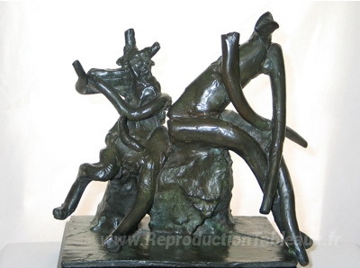 Nous vous proposons une reproduction artisanale sur toile du célèbre tableau 'Nymphe et satyre' de Reuben Nakian, provenant du Musée de la Reproduction.