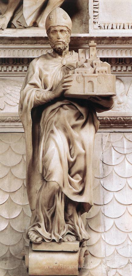 Nous vous proposons une reproduction artisanale sur toile du célèbre tableau 'Saint Petronius' de Michelangelo, provenant du Musée de la Reproduction.