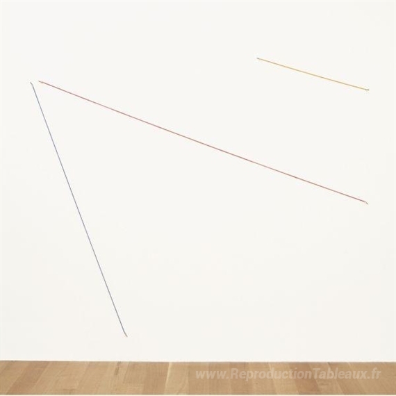 Nous vous proposons une reproduction artisanale sur toile du célèbre tableau 'Sans titre (construction murale)' de Fred Sandback, provenant du Musée de la Reproduction.