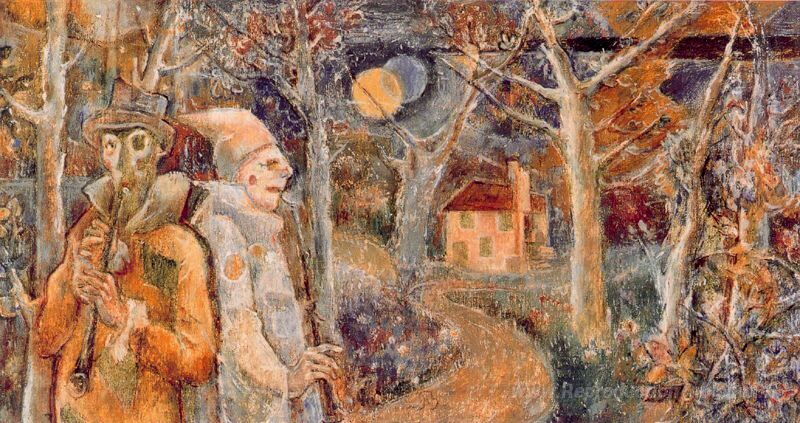 Nous vous proposons une reproduction artisanale sur toile du célèbre tableau 'Éclipse bleue' de Albert Bloch, provenant du Musée de la Reproduction.
