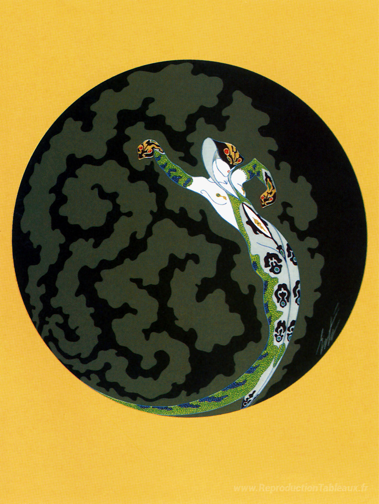 Nous vous proposons une reproduction artisanale sur toile du célèbre tableau 'Émotions, jalousie' de Erte, provenant du Musée de la Reproduction.