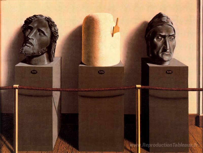 Nous vous proposons une reproduction artisanale sur toile du célèbre tableau 'Éternité' de Rene Magritte, provenant du Musée de la Reproduction.