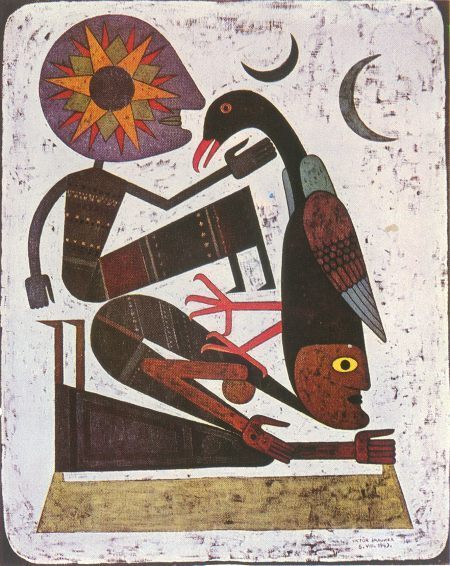 Nous vous proposons une reproduction artisanale sur toile du célèbre tableau 'Anagogie' de Victor Brauner, provenant du Musée de la Reproduction.