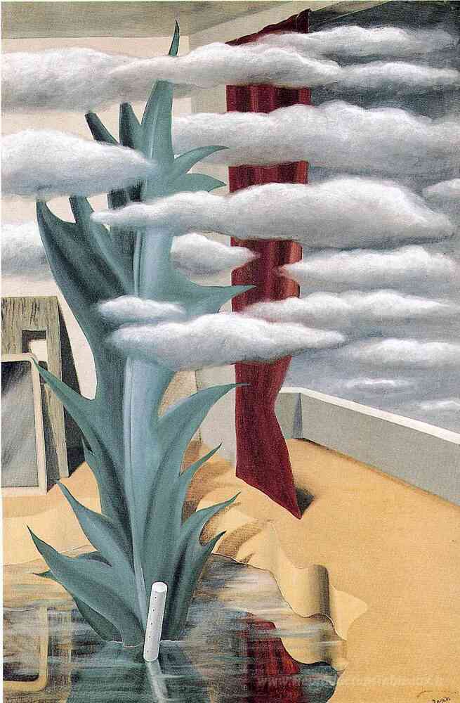 Nous vous proposons une reproduction artisanale sur toile du célèbre tableau 'Après l'eau, les nuages' de Rene Magritte, provenant du Musée de la Reproduction.