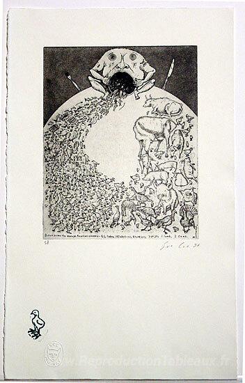 Nous vous proposons une reproduction artisanale sur toile du célèbre tableau 'Arche' de Sue Coe, provenant du Musée de la Reproduction.