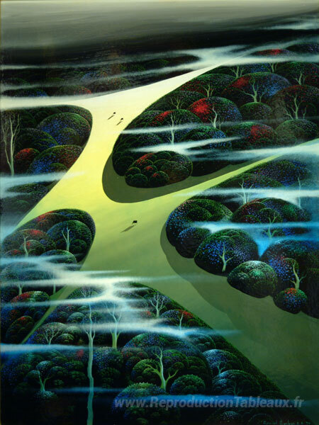 Bienvenue dans notre collection exquise de peintures à l'huile, où chaque œuvre raconte une histoire unique à travers la vision d'artistes emblématiques. Parmi nos précieuses reproductions, découvrez Au-dessus du Fogl, une œuvre remarquable d’Eyvind Earle. Connu pour son style distinctif alliant impressionnisme et art graphique, Earle capture la beauté de la nature avec des couleurs vibrantes et des formes stylisées qui émerveillent le regard.