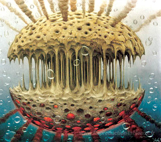 Nous vous proposons une reproduction artisanale sur toile du célèbre tableau 'Balle' de Jacek Yerka, provenant du Musée de la Reproduction.
