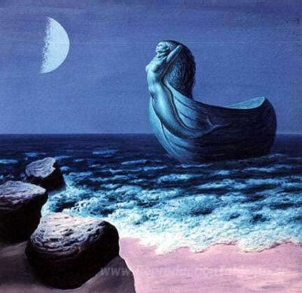 Nous vous proposons une reproduction artisanale sur toile du célèbre tableau 'Bateau de la sirène' de Sabin Balasa, provenant du Musée de la Reproduction.