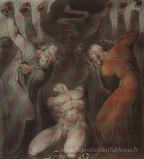 Nous vous proposons une reproduction artisanale sur toile du célèbre tableau 'Blasphème' de William Blake, provenant du Musée de la Reproduction.