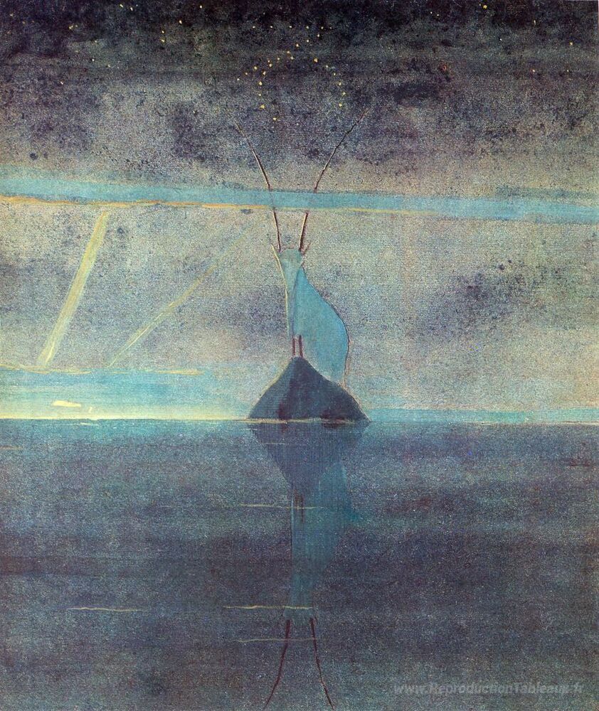 Nous vous proposons une reproduction artisanale sur toile du célèbre tableau 'Capricon' de Mikalojus Ciurlionis, provenant du Musée de la Reproduction.