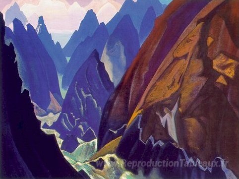 Nous vous proposons une reproduction artisanale sur toile du célèbre tableau 'Chemin' de Nicholas Roerich, provenant du Musée de la Reproduction.