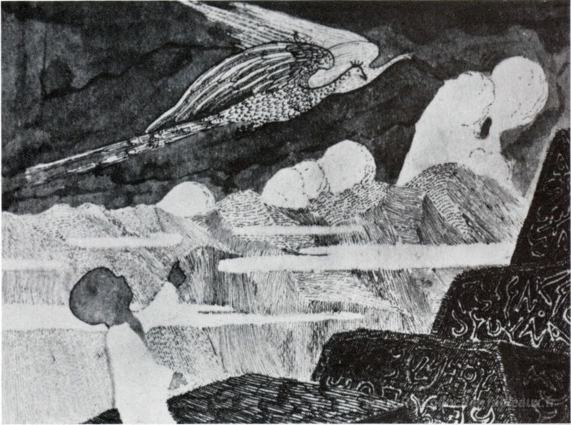Nous vous proposons une reproduction artisanale sur toile du célèbre tableau 'Composizione' de Mikalojus Ciurlionis, provenant du Musée de la Reproduction.