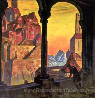 Nous vous proposons une reproduction artisanale sur toile du célèbre tableau 'Cor Ardens' de Nicholas Roerich, provenant du Musée de la Reproduction.