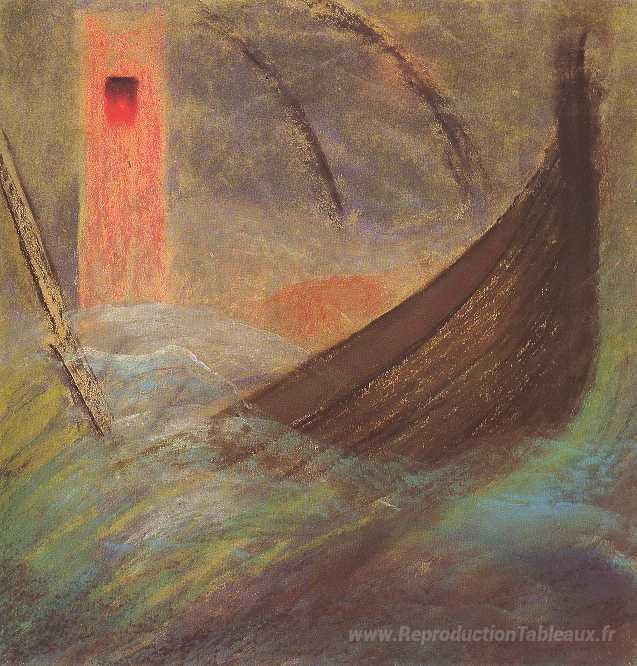 Nous vous proposons une reproduction artisanale sur toile du célèbre tableau 'Déluge (v)' de Mikalojus Ciurlionis, provenant du Musée de la Reproduction.