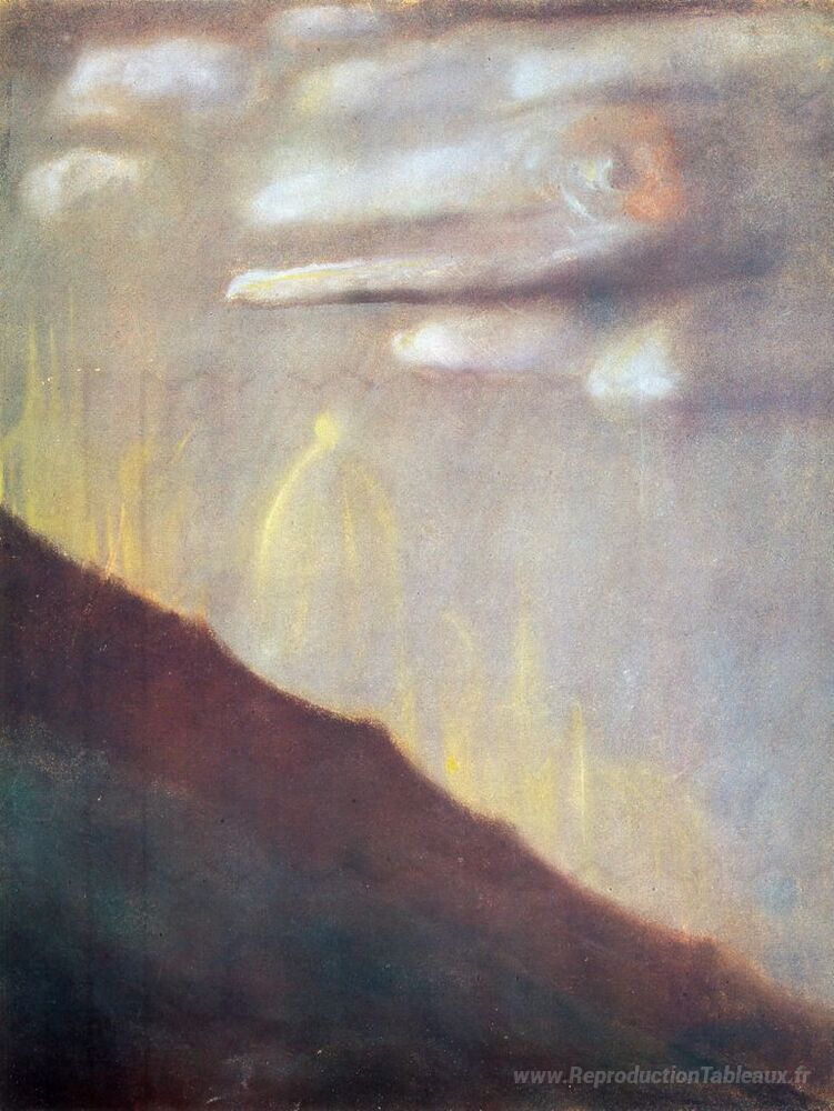 Nous vous proposons une reproduction artisanale sur toile du célèbre tableau 'Déluge (viii)' de Mikalojus Ciurlionis, provenant du Musée de la Reproduction.