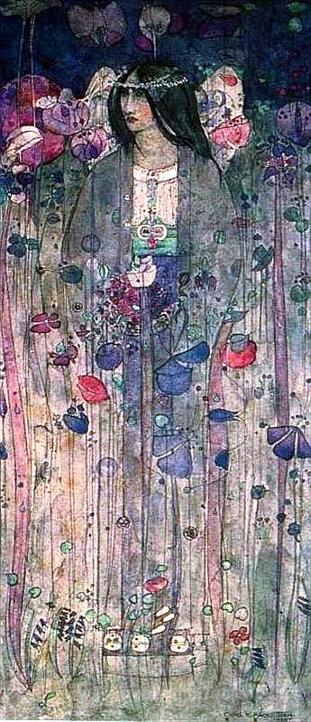 Nous vous proposons une reproduction artisanale sur toile du célèbre tableau 'Dans les fées' de Charles Rennie Mackintosh, provenant du Musée de la Reproduction.