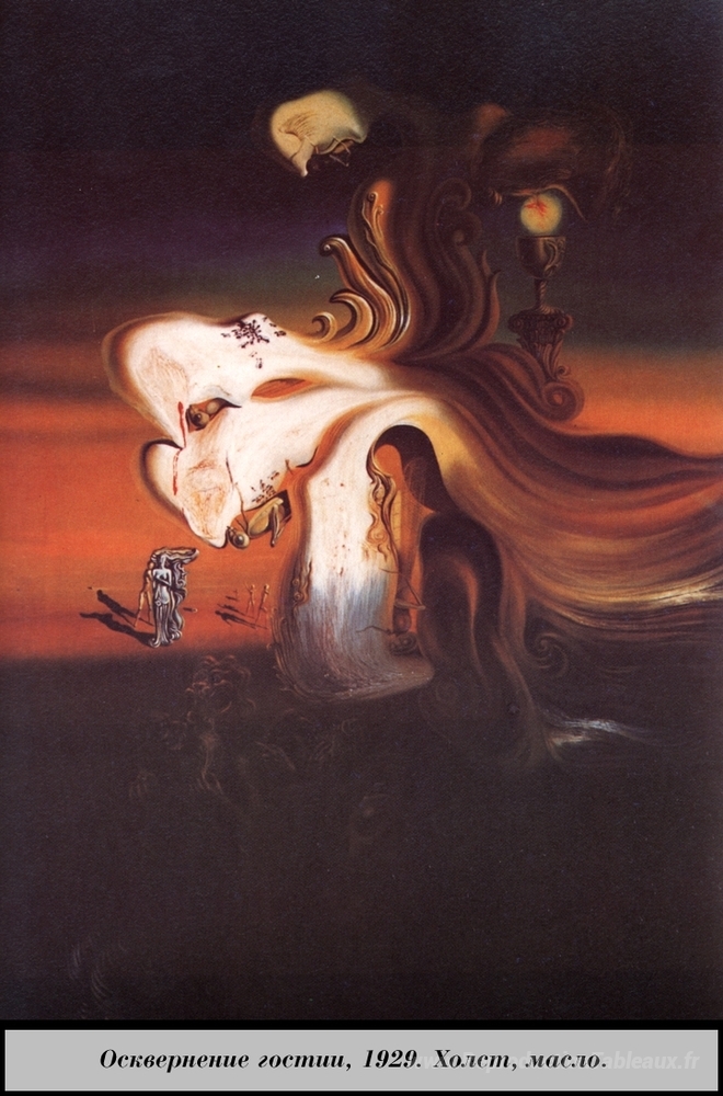 Nous vous proposons une reproduction artisanale sur toile du célèbre tableau 'Descripti de profanation' de Salvador Dali, provenant du Musée de la Reproduction.