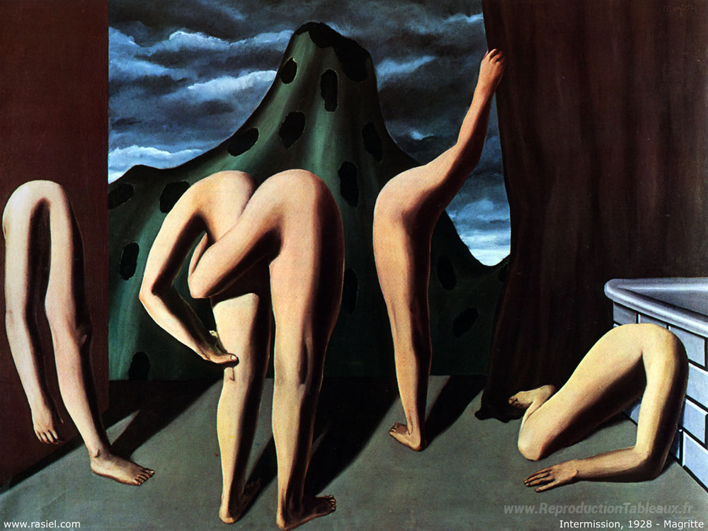 Nous vous proposons une reproduction artisanale sur toile du célèbre tableau 'Entracte' de Rene Magritte, provenant du Musée de la Reproduction.