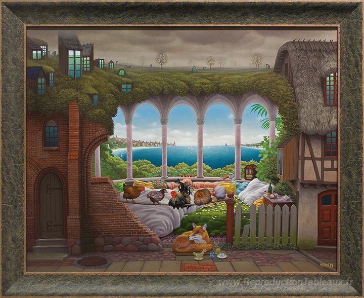 Bienvenue dans notre collection de reproductions d'œuvres d'art, où la magie des peintures à l'huile prend vie dans votre espace. Nous vous invitons à découvrir Fin de semaine, une œuvre emblématique de l'artiste polonais Jacek Yerka. Ce tableau, à la fois onirique et riche en détails, illustre parfaitement le génie créatif de Yerka, qui allie réalisme et surréalisme pour capturer l'imaginaire. Chaque coup de pinceau est un témoignage de son habileté à transformer des scènes banales en véritables chefs-d'œuvre.