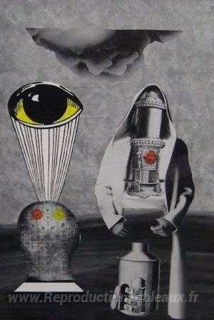 Nous vous proposons une reproduction artisanale sur toile du célèbre tableau 'Gardien de l'arsenal' de Conroy Maddox, provenant du Musée de la Reproduction.