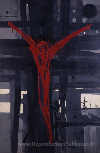 Nous vous proposons une reproduction artisanale sur toile du célèbre tableau 'Gologotha' de Gebre Kristos Desta, provenant du Musée de la Reproduction.