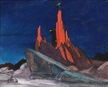 Nous vous proposons une reproduction artisanale sur toile du célèbre tableau 'Hommage à Saint Jean le baptiste' de Nicholas Roerich, provenant du Musée de la Reproduction.