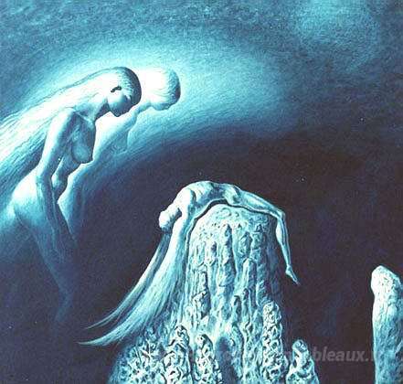 Nous vous proposons une reproduction artisanale sur toile du célèbre tableau 'Icarus' de Sabin Balasa, provenant du Musée de la Reproduction.