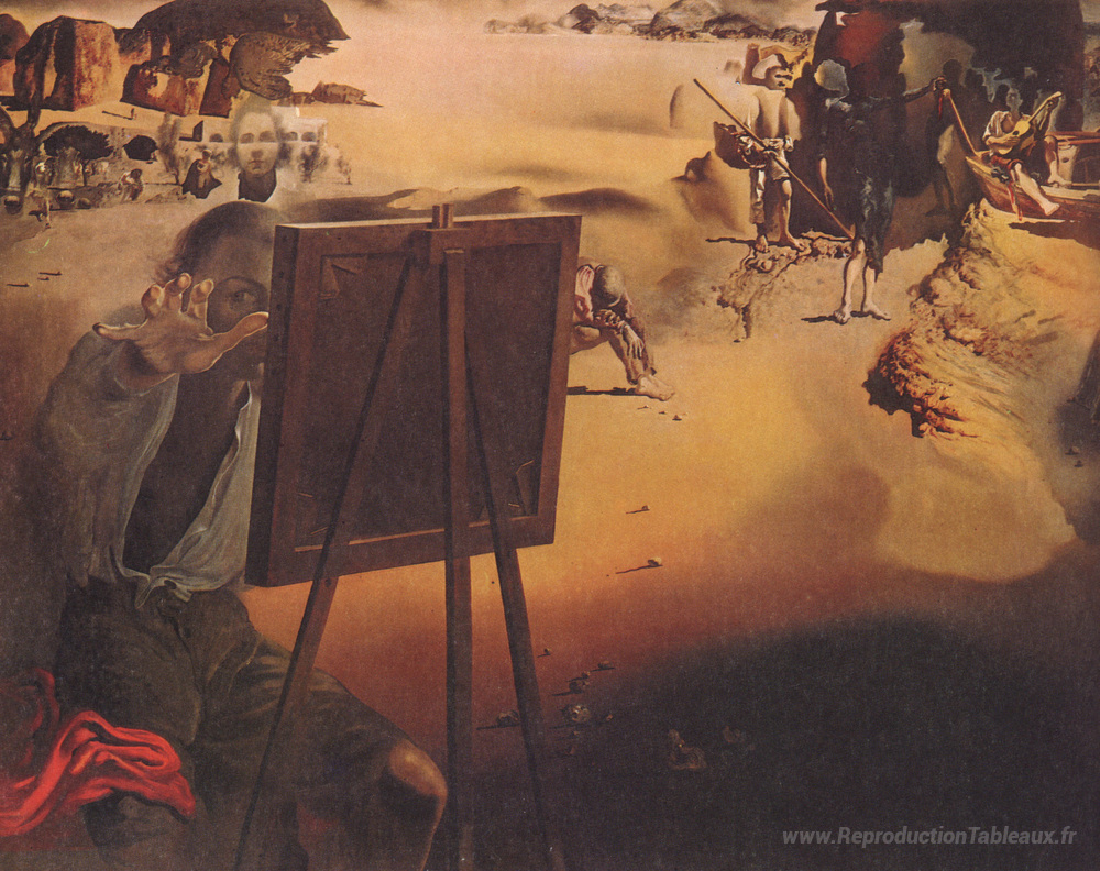 Nous vous proposons une reproduction artisanale sur toile du célèbre tableau 'Impression de l'Afrique' de Salvador Dali, provenant du Musée de la Reproduction.
