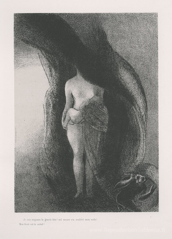 Nous vous proposons une reproduction artisanale sur toile du célèbre tableau 'Je suis toujours le grand Isis! Aucun n'a encore soulevé mon voi' de Odilon Redon, provenant du Musée de la Reproduction.