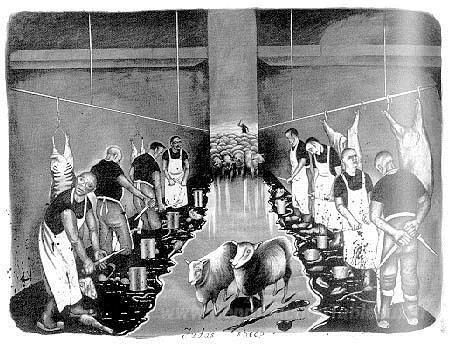 Nous vous proposons une reproduction artisanale sur toile du célèbre tableau 'Judas hee' de Sue Coe, provenant du Musée de la Reproduction.