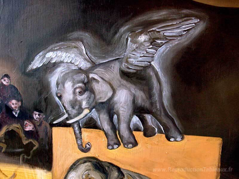Nous vous proposons une reproduction artisanale sur toile du célèbre tableau 'Jumbo en peluche (fragment)' de Sue Coe, provenant du Musée de la Reproduction.