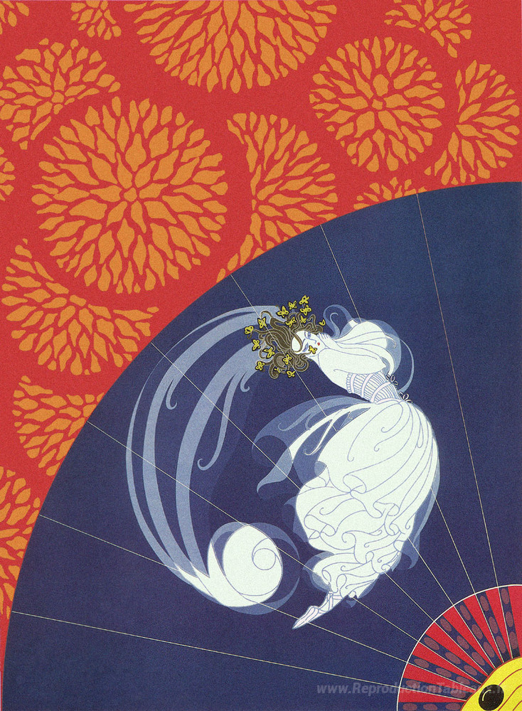 Nous vous proposons une reproduction artisanale sur toile du célèbre tableau 'Légèreté' de Erte, provenant du Musée de la Reproduction.