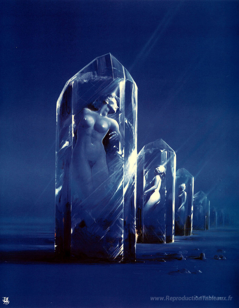 Nous vous proposons une reproduction artisanale sur toile du célèbre tableau 'La chanson des diamants' de Wojciech Siudmak, provenant du Musée de la Reproduction.